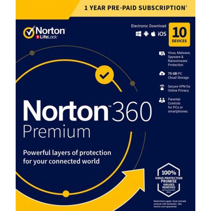 Norton 360 Premium (Europe Only) – 1 Year / 10 Devices – Email Delivery