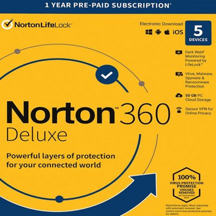 Norton 360 Deluxe (Europe Only) – 1 Year / 5 Devices – Email Delivery